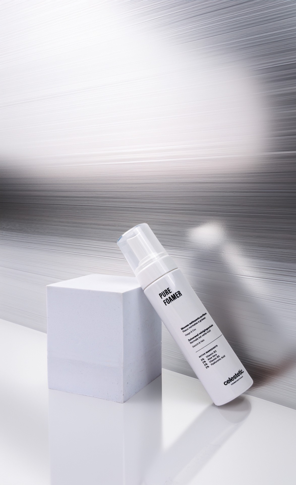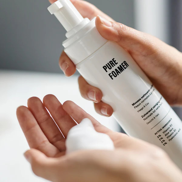 Pure Foamer: een schuimende reiniger die overtollig talg verwijdert, poriën vernauwt en helpt mee-eters te verminderen.